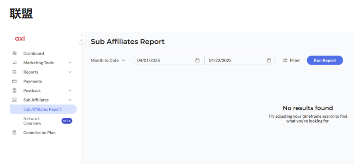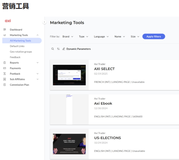 摘要:Axi外汇平台的联盟门户的使用联盟门户通过以下菜单为联盟提供有价值的见解:1、仪表板2、营销工具3、子联盟4、报告5、佣金计划使用门户跟踪注册和佣金,查看交易,下载报告等。