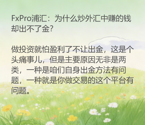FxPro浦汇:为什么炒外汇中赚的钱却出不了金?