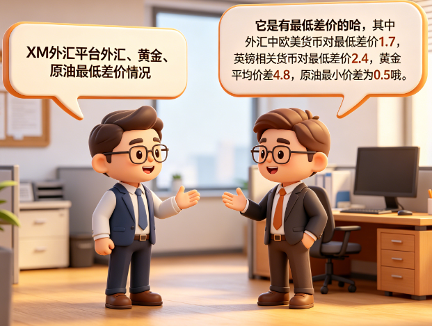XM外汇平台中外汇、黄金、原油最低差价情况